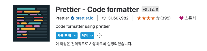 마지막으로 .eslintrc, .prettierrc을 생성해서 세팅한 뒤, vscode 설정에 가서 Formatter를 검색해서 Prettier로 변경해주자. FormatOnSave도 true로 변경해준다면 저장 시 코드를 포매팅할 수 있다.